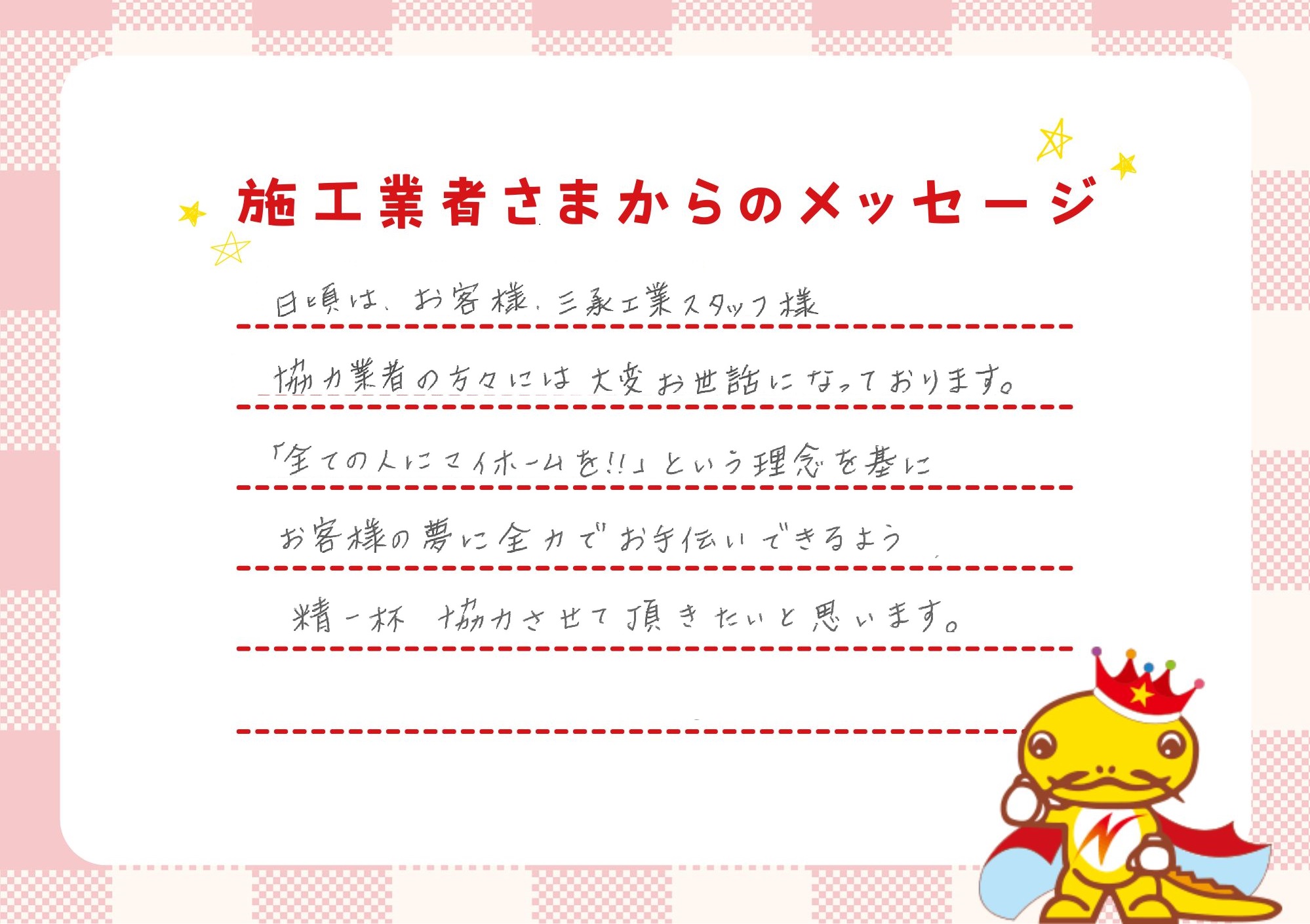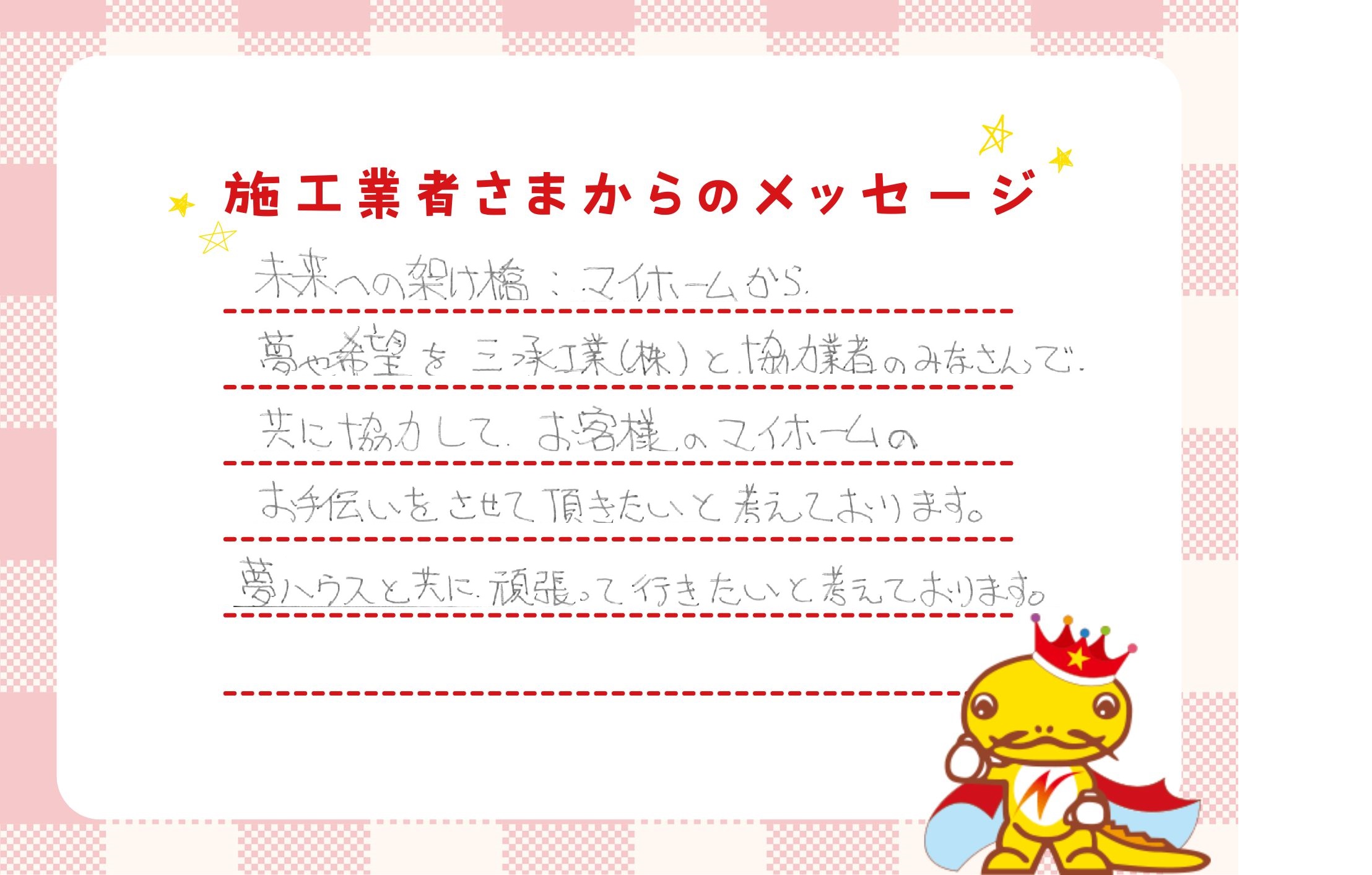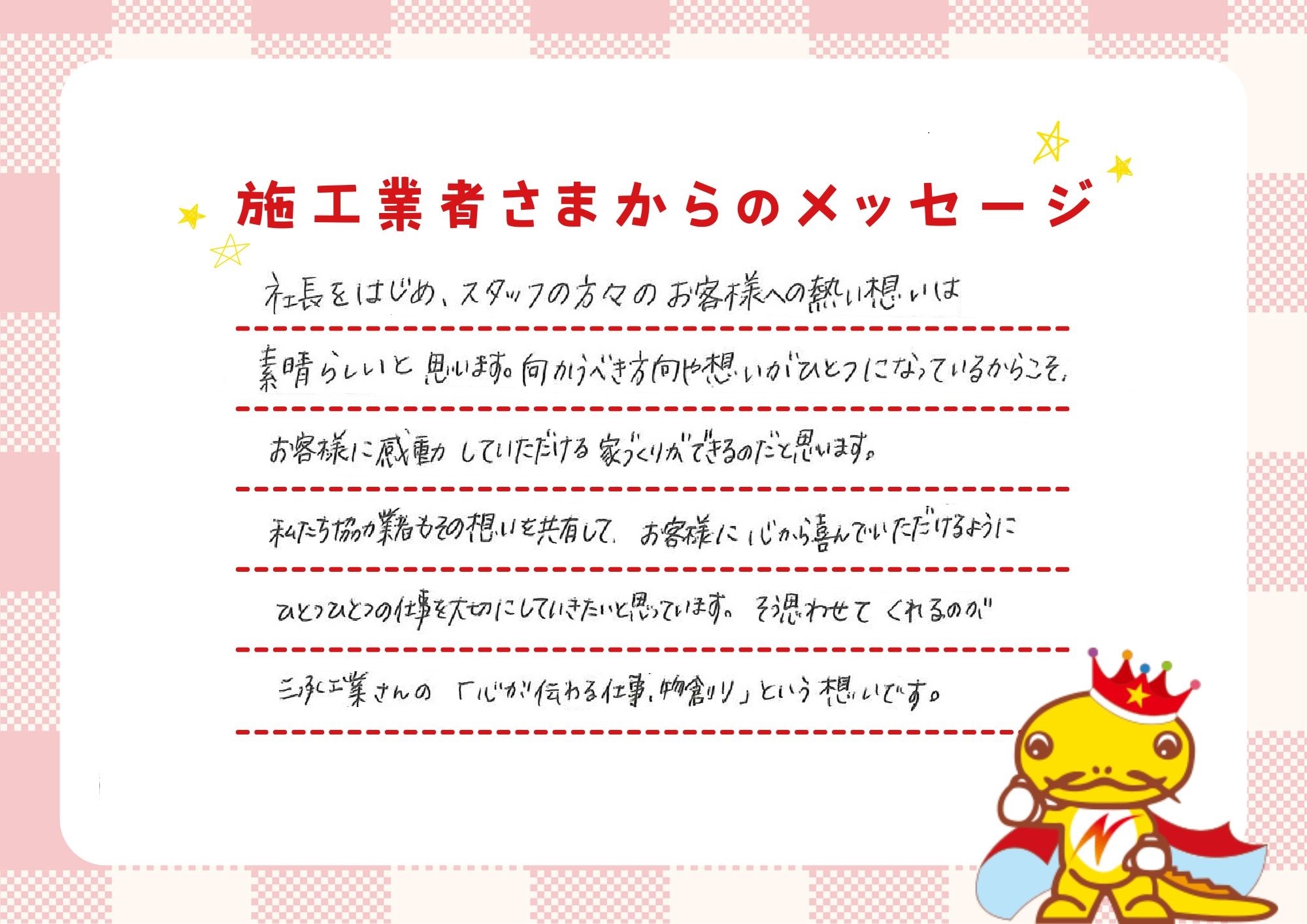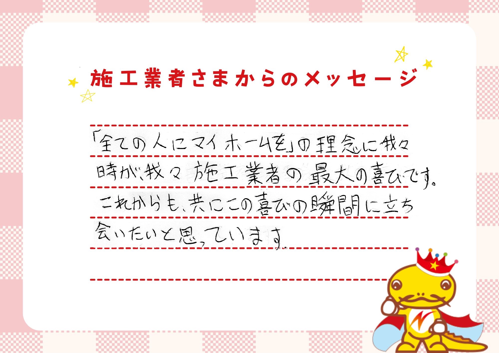 「一戸建てに、ゆとりのある返済で住んでほしい。」それが私たちの願いです。