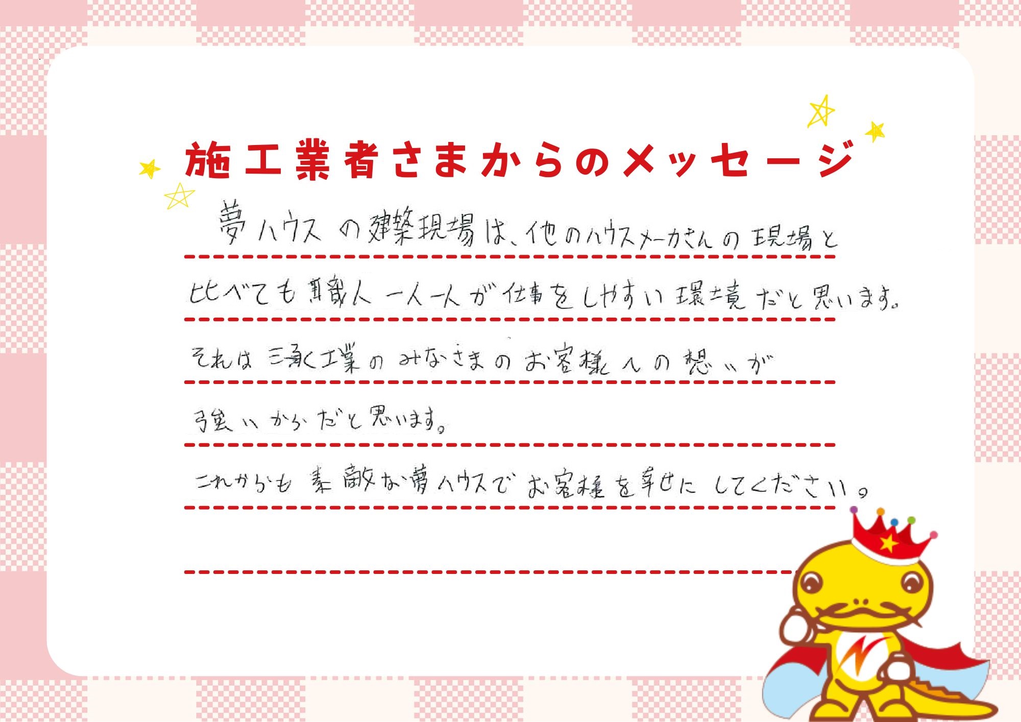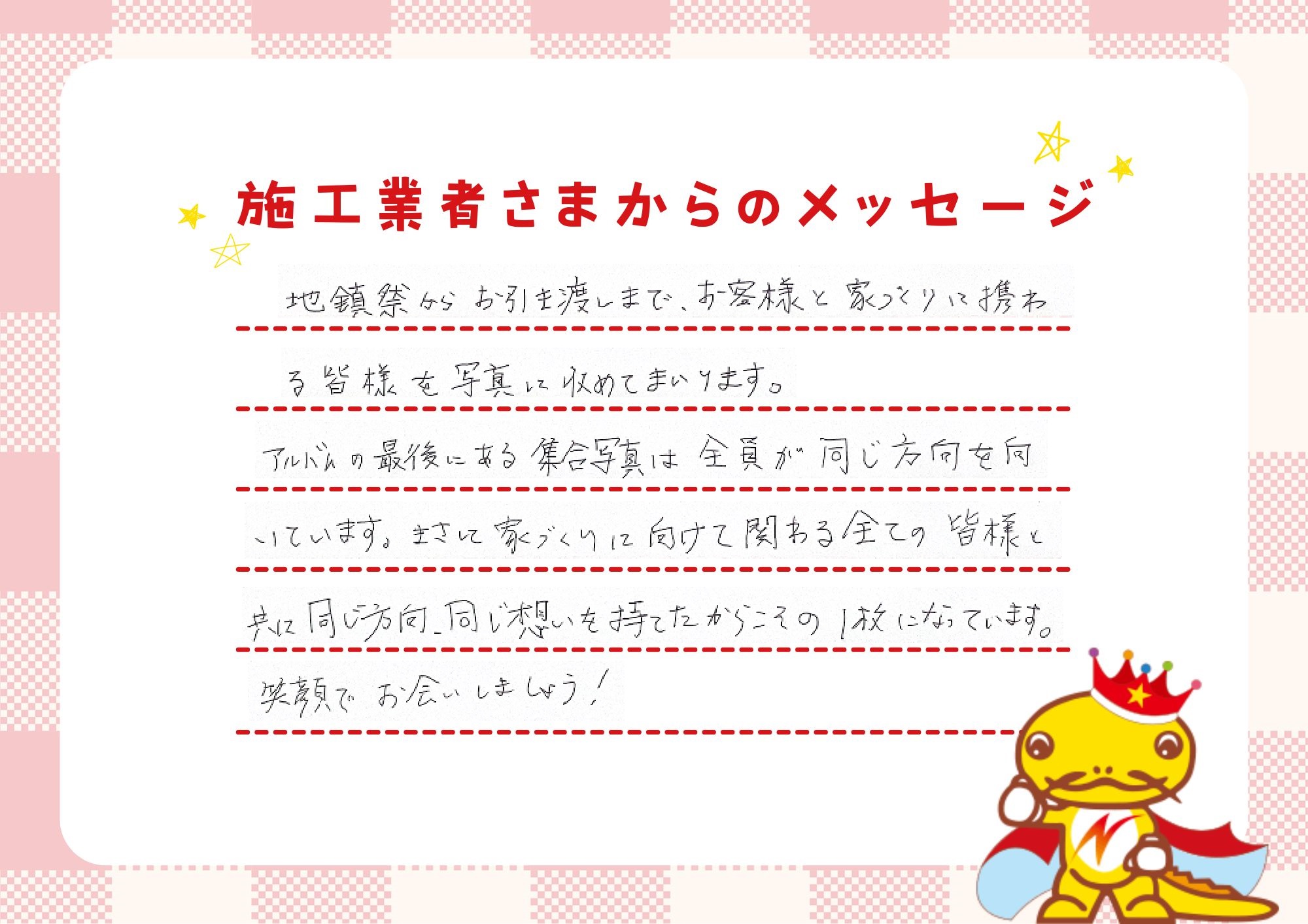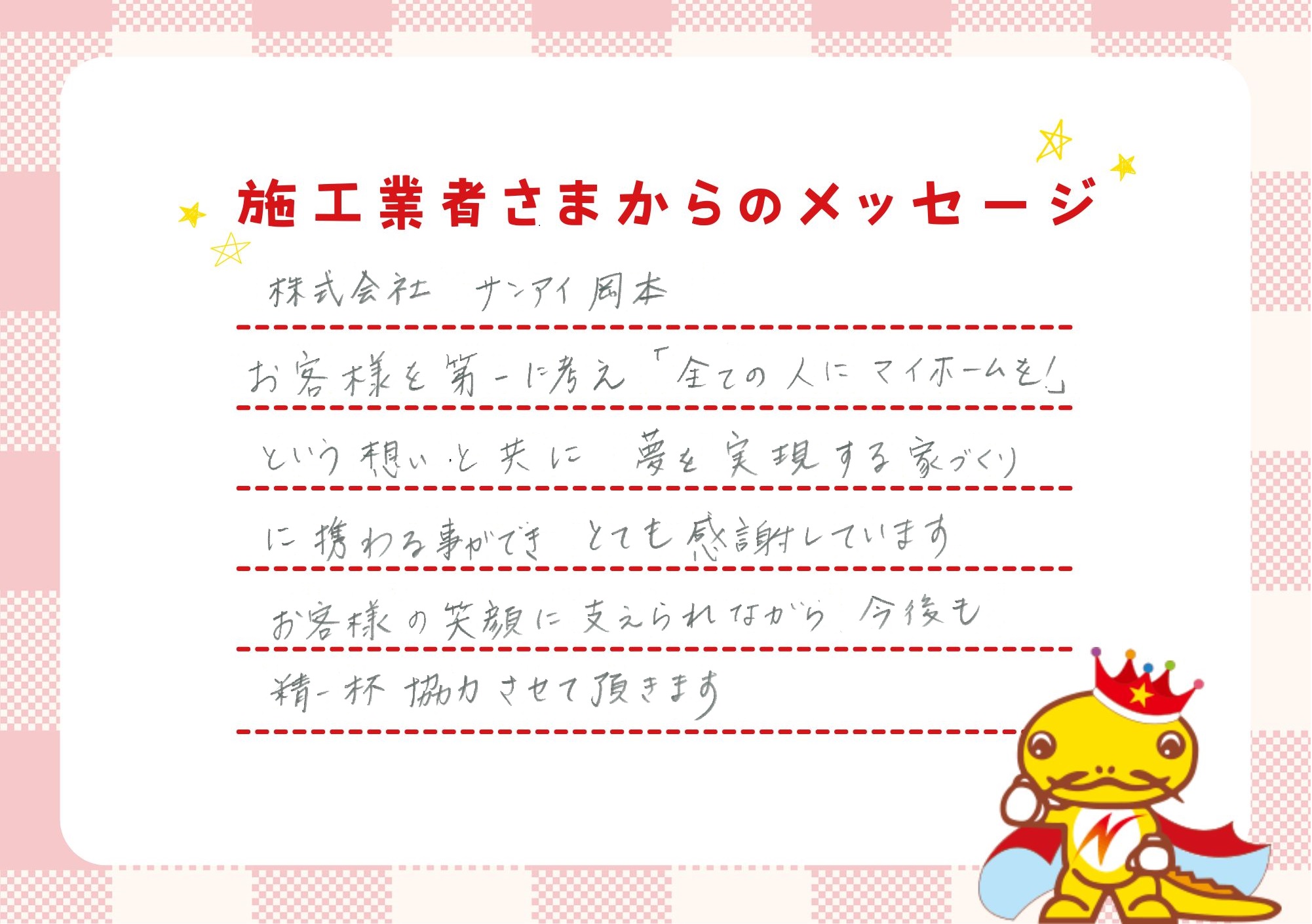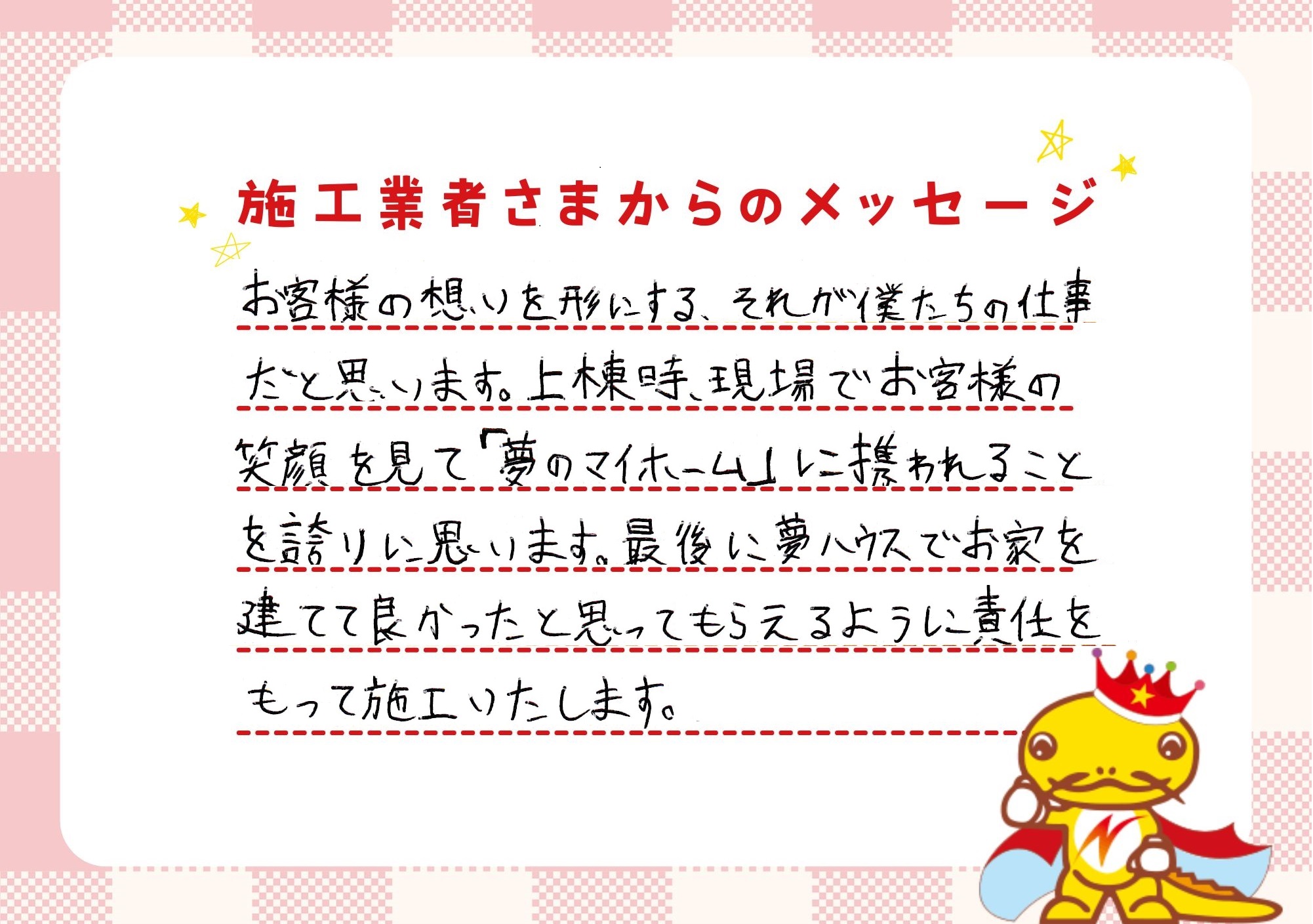 「一戸建てに、ゆとりのある返済で住んでほしい。」それが私たちの願いです。