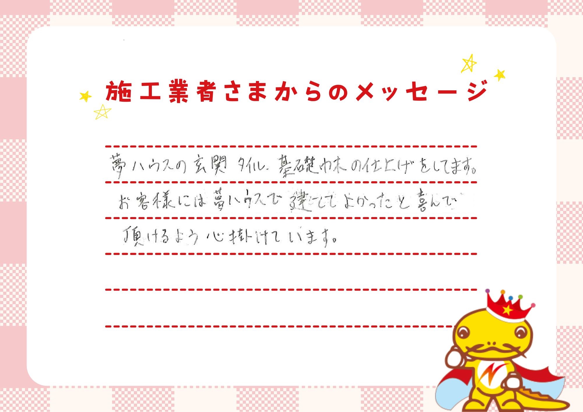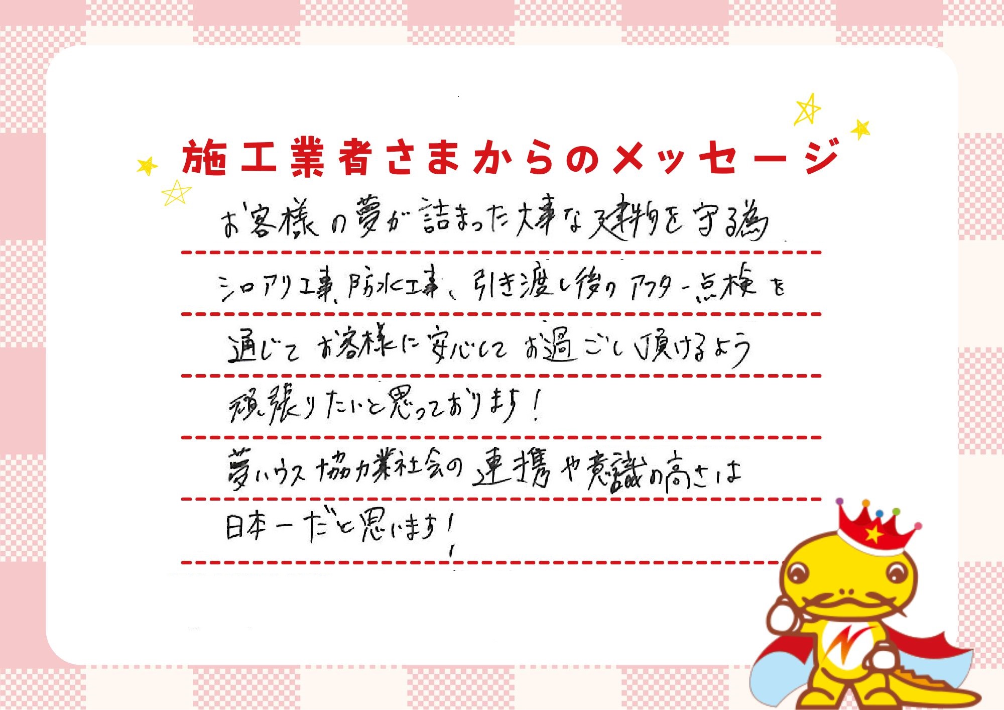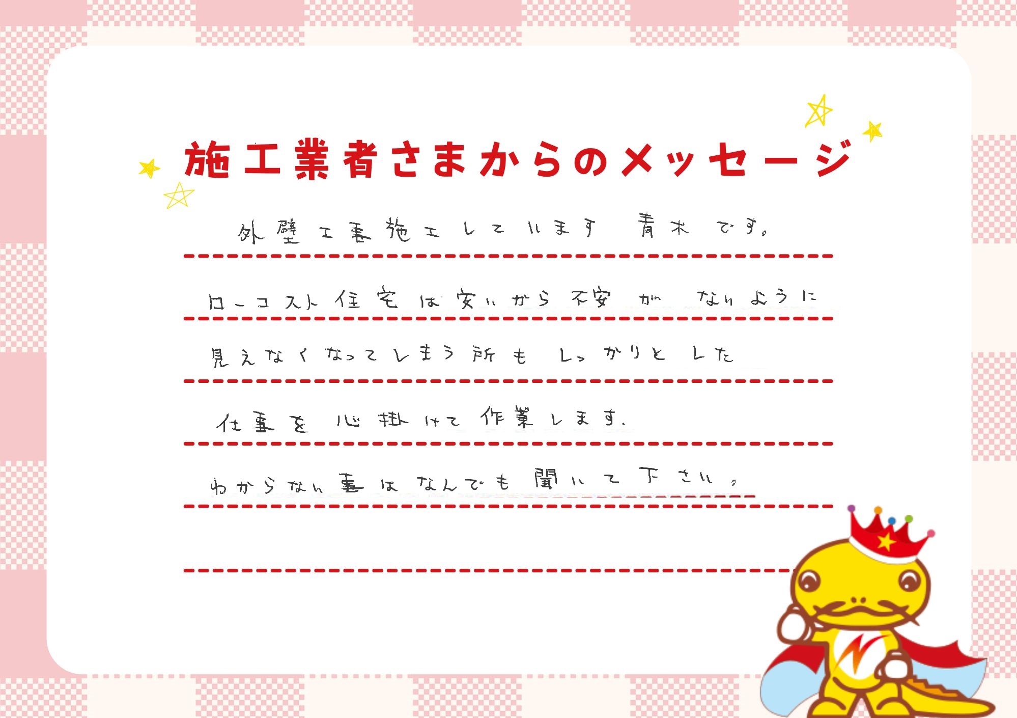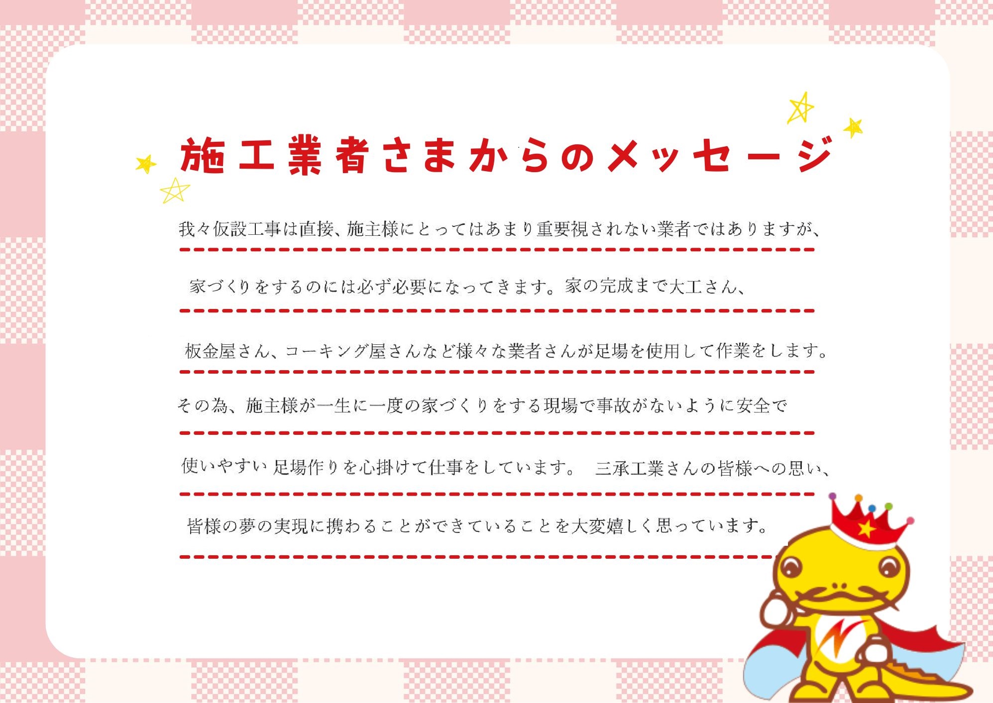 「一戸建てに、ゆとりのある返済で住んでほしい。」それが私たちの願いです。