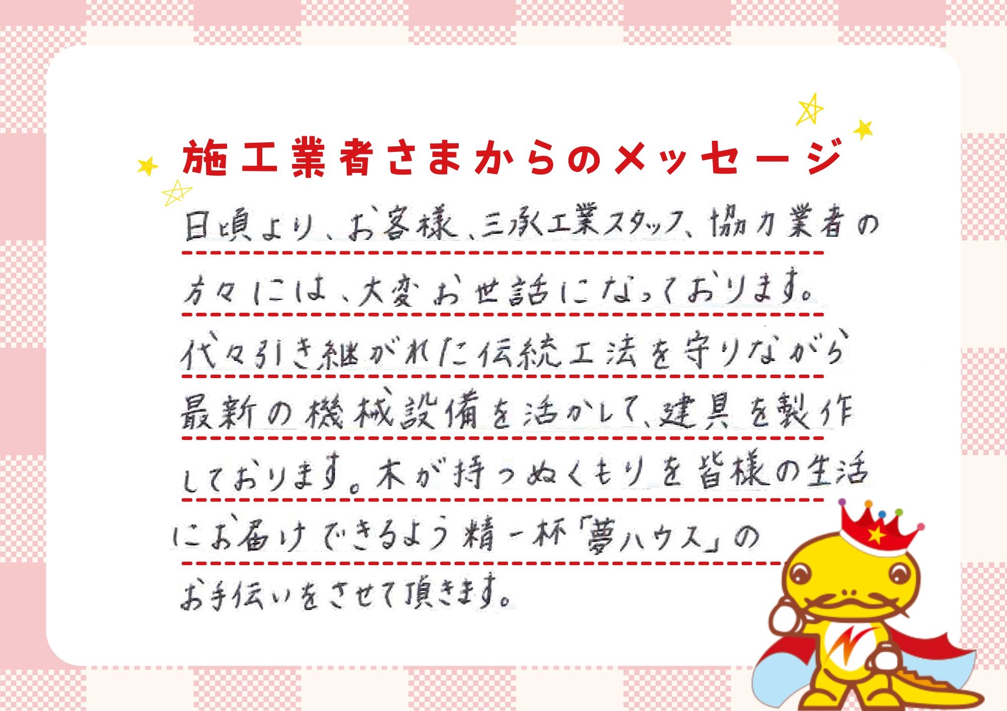これまでずっと「家を建てたいが、手が出せない……」そんなお客様に申し訳ないと思っていました。