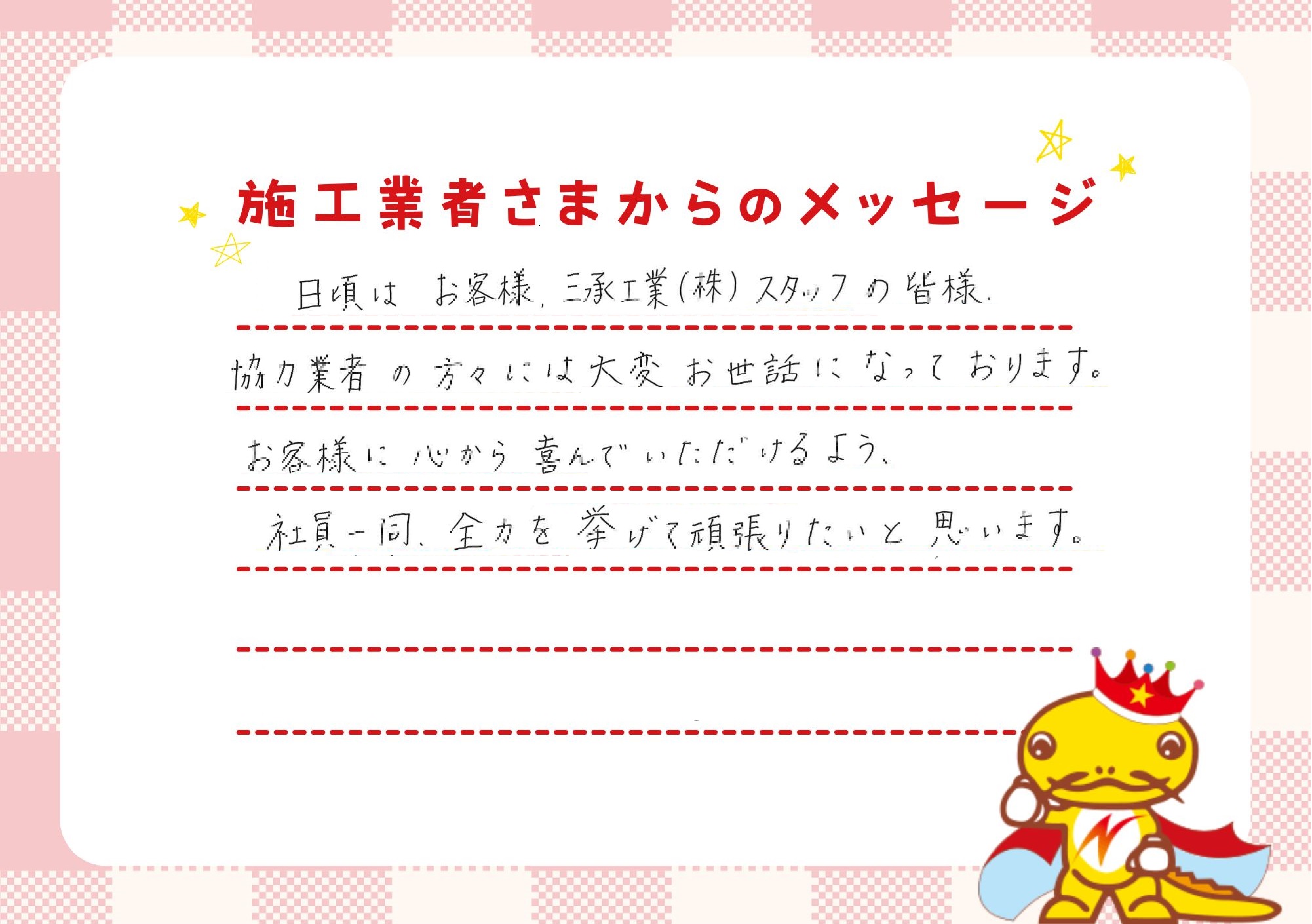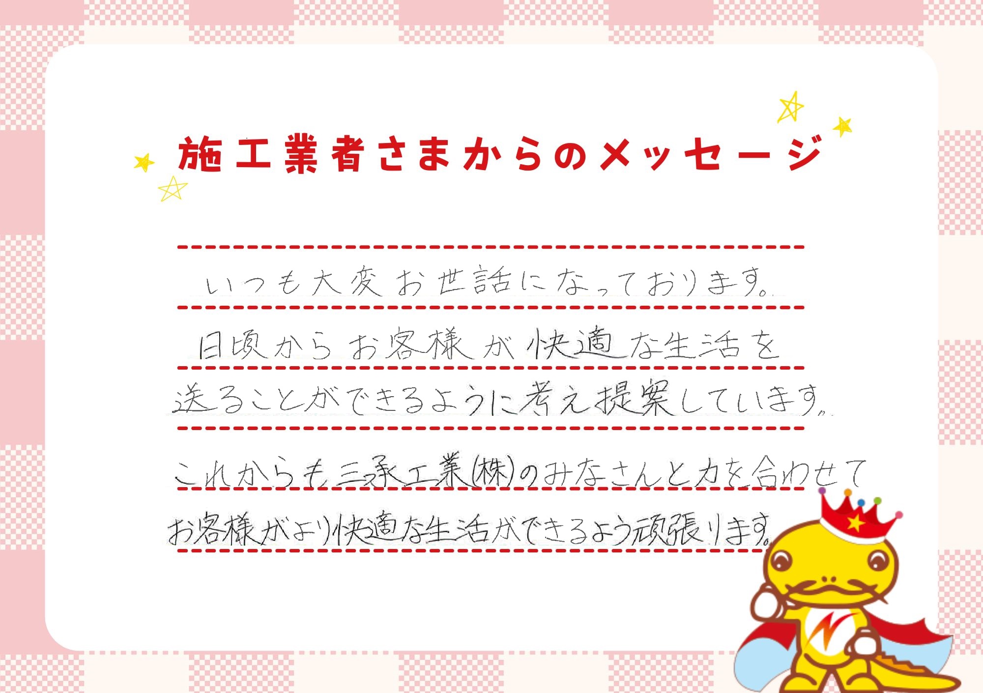 そしてお客様のお役に一生立ち続け、社員全員・会社に関わる全ての皆様に生きがいと