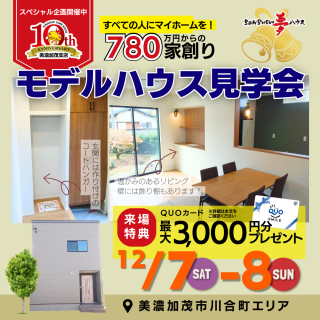 【チラシをご覧の方へ】美濃加茂市川合町モデルハウス見学会開催🎄12/7・8