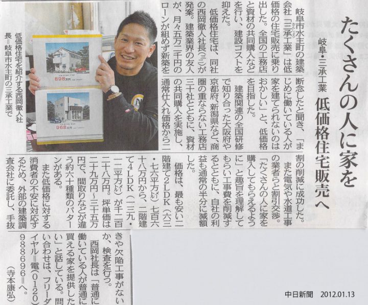 SUNSHOW夢ハウスについての記事が掲載されました。 低価格住宅の販売開始 …