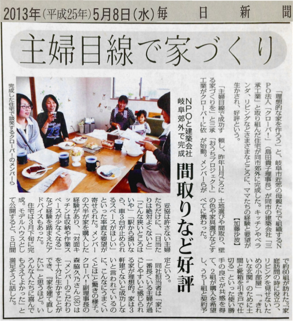 主婦目線でのおうちづくりについての記事が掲載されました。 NPO法人クローバー…