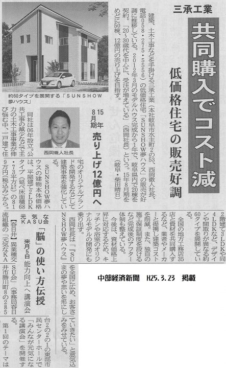 SUNSHOW夢ハウスが取り上げられました。 低価格の仕組みなどを書いていただ…