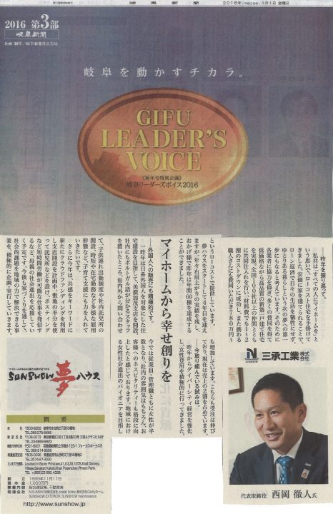 岐阜新聞の岐阜リーダーズボイス2016に掲載されました。