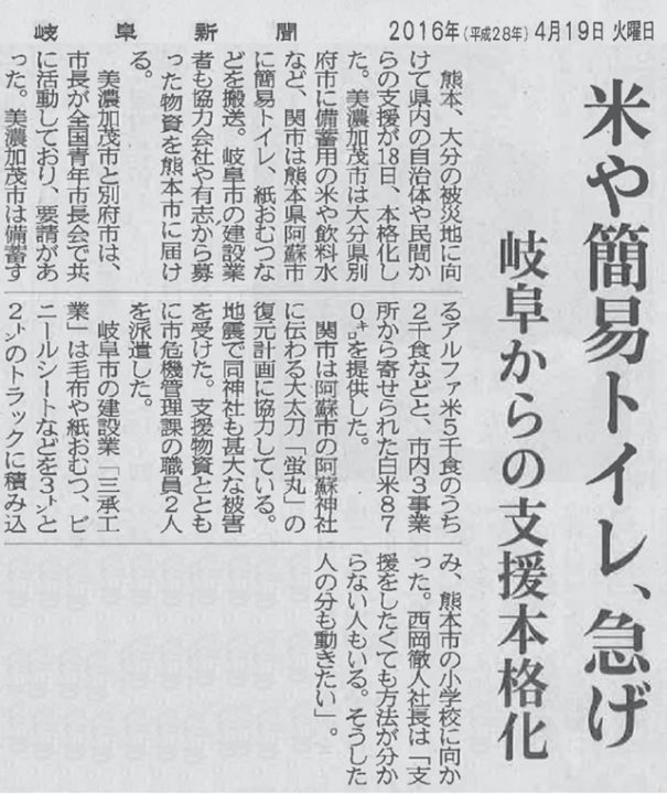 2016年4月19日(岐阜新聞)