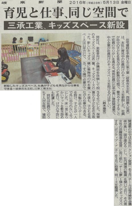 社員向けのキッズスペース新設についての記事を掲載していただけました。…