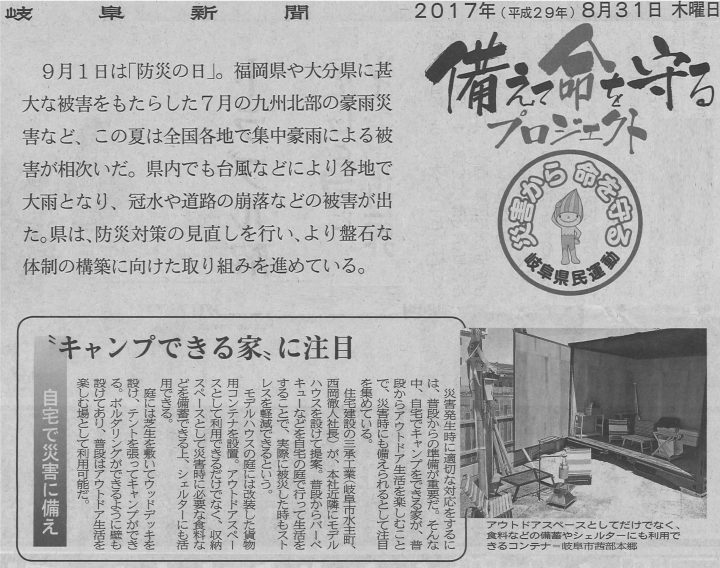 岐阜新聞の防災の日特集ページに"キャンプできる家"についての記事を掲載していただ…