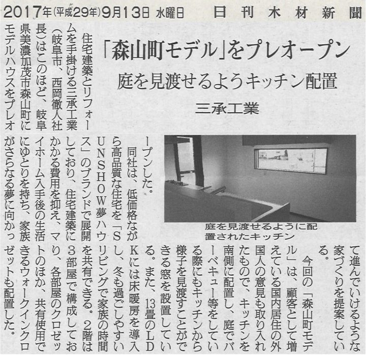 日刊木材新聞に森山モデルについての記事を掲載していただけました。