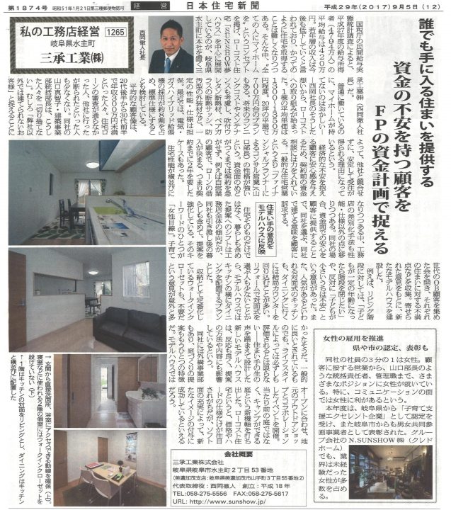 日本住宅新聞に弊社についての記事を掲載していただけました。