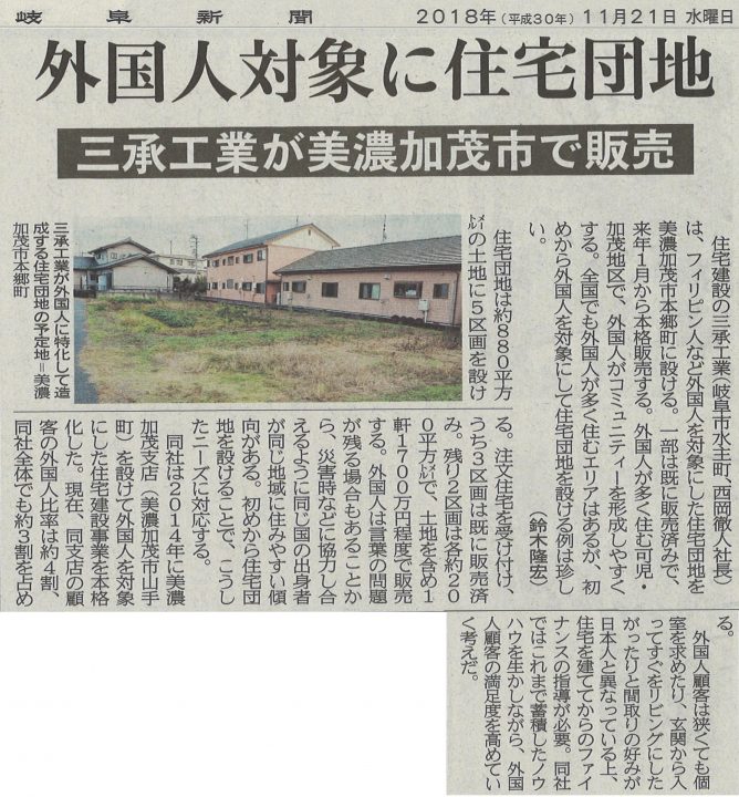 三承工業が新たに取り組む“ 外国籍のお客様専用の宅地販売 ”を取り上げていただき…