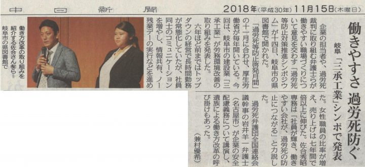 11月14日に岐阜市で行われた「過労死等防止対策推進シンポジウム」にて 弊社の…