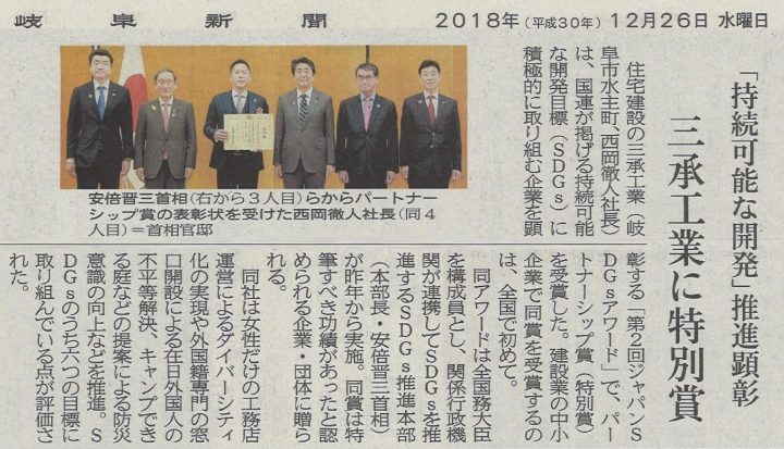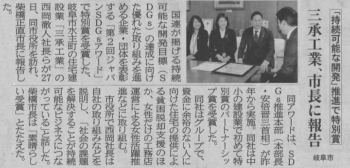 「第2回ジャパンSDGsアワード パートナーシップ賞(特別賞)」受賞を岐阜市長へ…