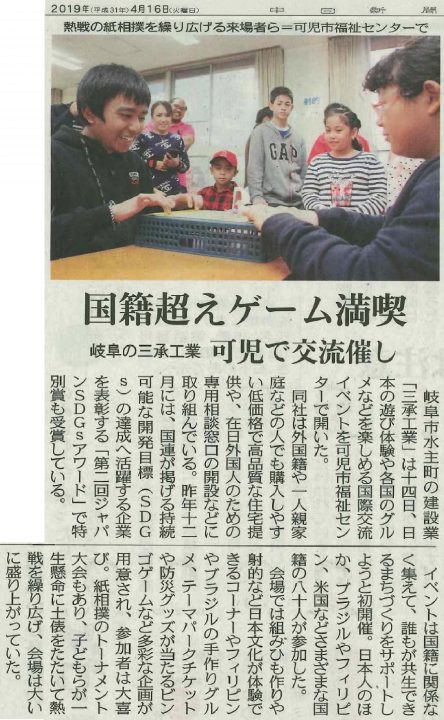 可児市にて開催した国際交流会の様子を取り上げていただきました。