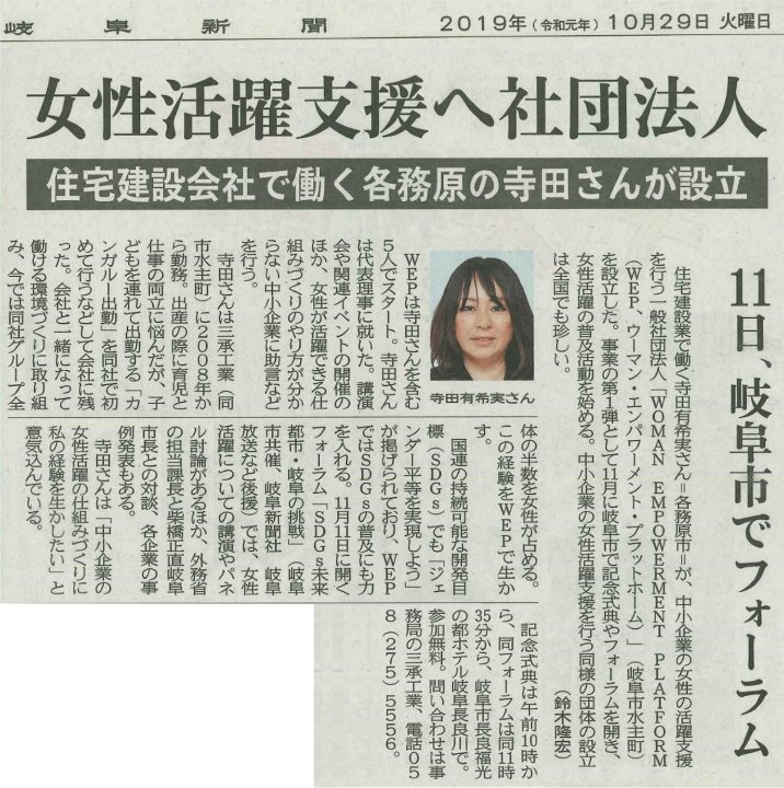 2019年10月29日(岐阜新聞)