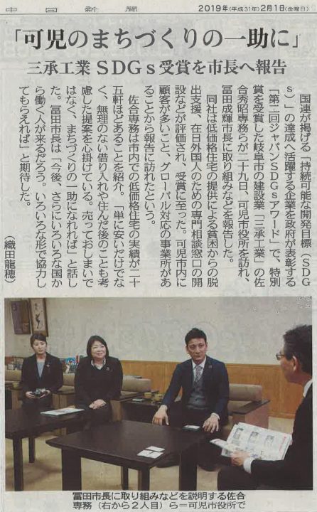 ジャパンSDGsアワードの受賞報告のため可児市役所を表敬訪問して参りました。