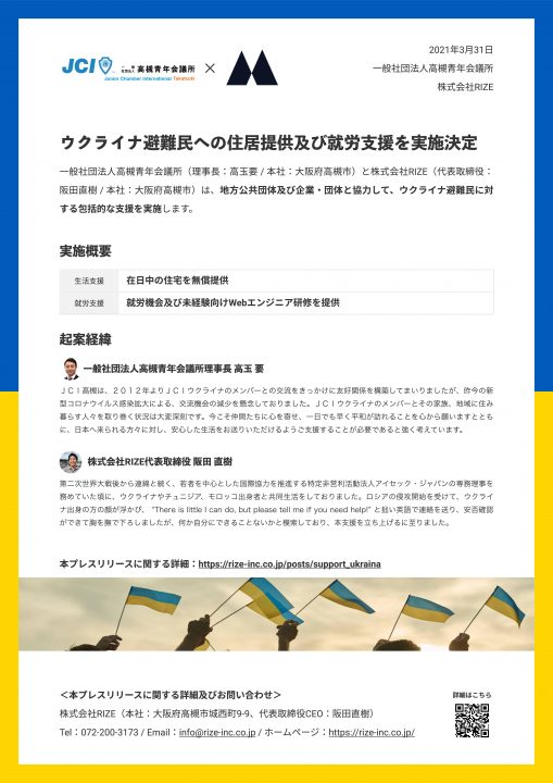 一般社団法人高槻青年会議所様と株式会社RIZE様によるウクライナ難民支援事業が立…