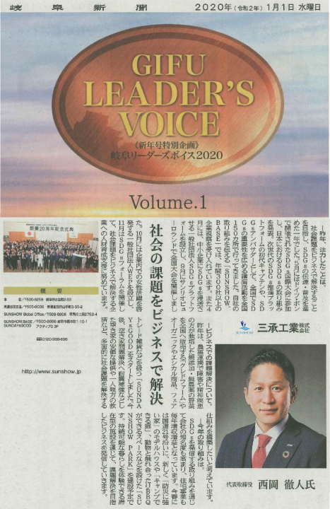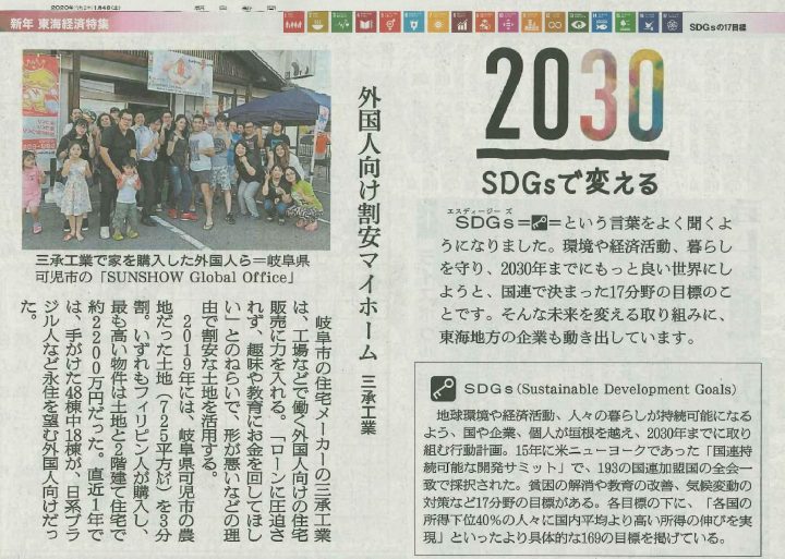 朝日新聞様の新年東海経済特集2030SDGsのページに掲載していただけました。