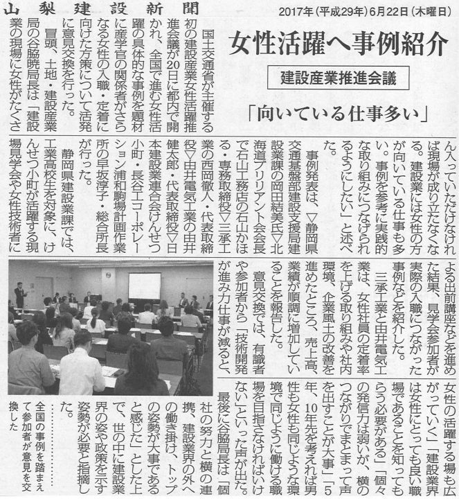 山梨建設新聞に「建設産業女性活躍推進会議」についての記事を掲載していただけました…
