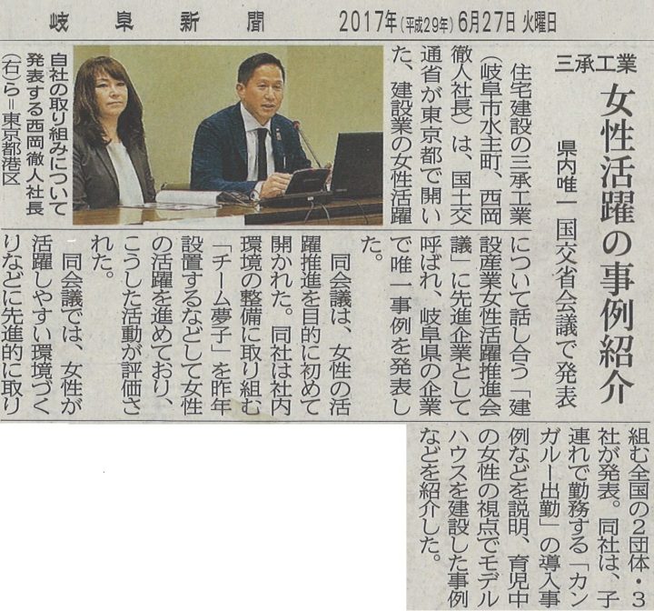 岐阜新聞に「建設産業女性活躍推進会議」についての記事を掲載していただけました。…