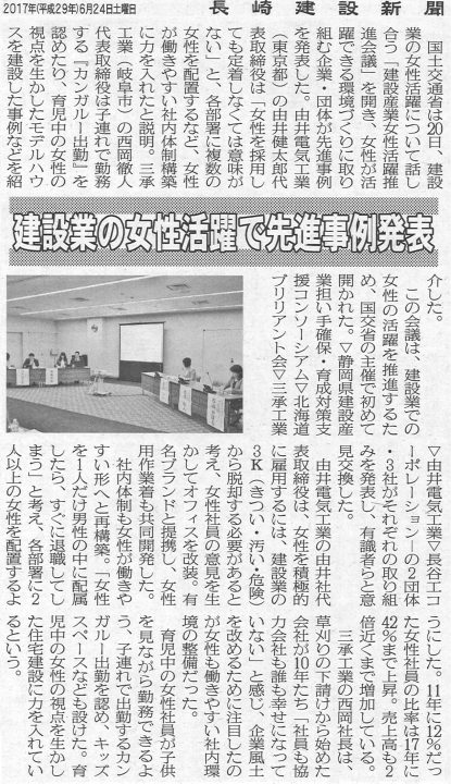 長﨑建設新聞に国土交通省主催の「建設産業女性活躍推進会議」について記事を掲載して…