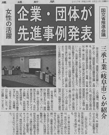 日刊建設工業新聞に国土交通省主催の「女性活躍推進会議」について記事を掲載していた…