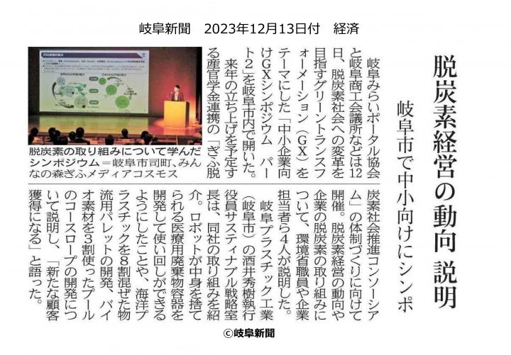 岐阜市で開催されたGXシンポジウムの様子が掲載されました。