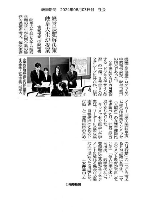 2024年7月31日中部経済新聞オンライン版 8月3日岐…