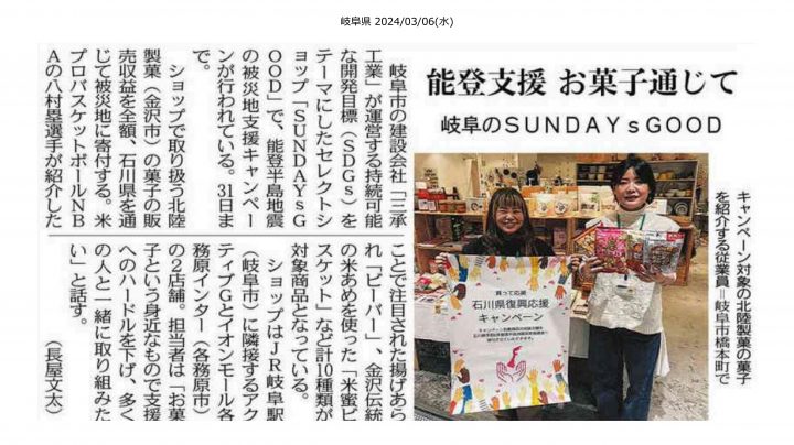 三承工業株式会社が運営する「SUNDAYs GOOD」で、能登半島地震の被災地支…