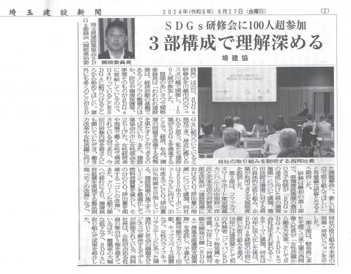 9月25日に行われた埼玉県建設業協会SDGs研修会にて、弊社のSDGsを経営の中…