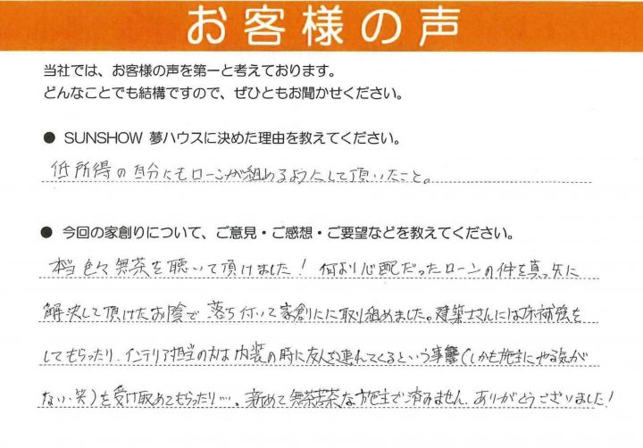 何より心配だったローンの件を真っ先に解決していただけた