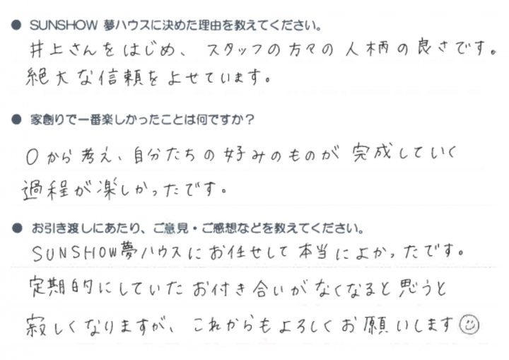 SUNSHOW夢ハウスに任せて本当によかった