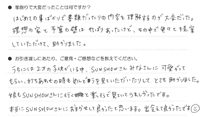 本当にSUNSHOWさんにおまかせして良かった