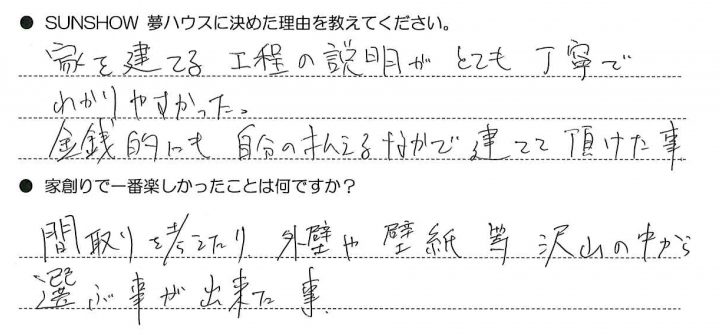 担当さんの暖かい家造りへの想いも決め手になりました。