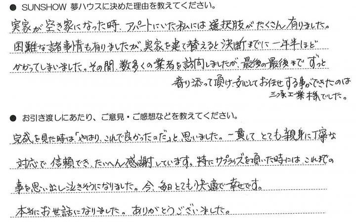 担当さんの暖かい家造りへの想いも決め手になりました。
