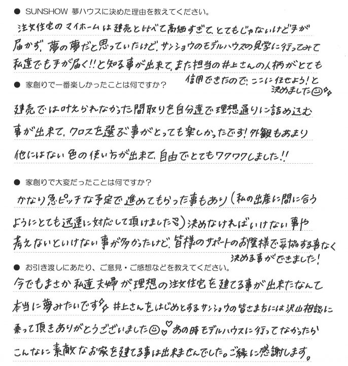 K様 理想の注文住宅を建てることができたなんて夢みたいです✨