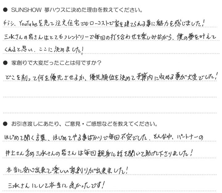 T様 安心して楽しい家創りができました!!!